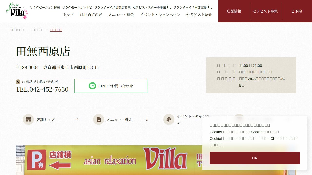 西東京市に店舗を構えるリラクゼーションサロン『ヴィラ田無西原店』。落ち着いた空間で心身ともにリラックスできる時間を提供しています。 完全個室のプライ […]