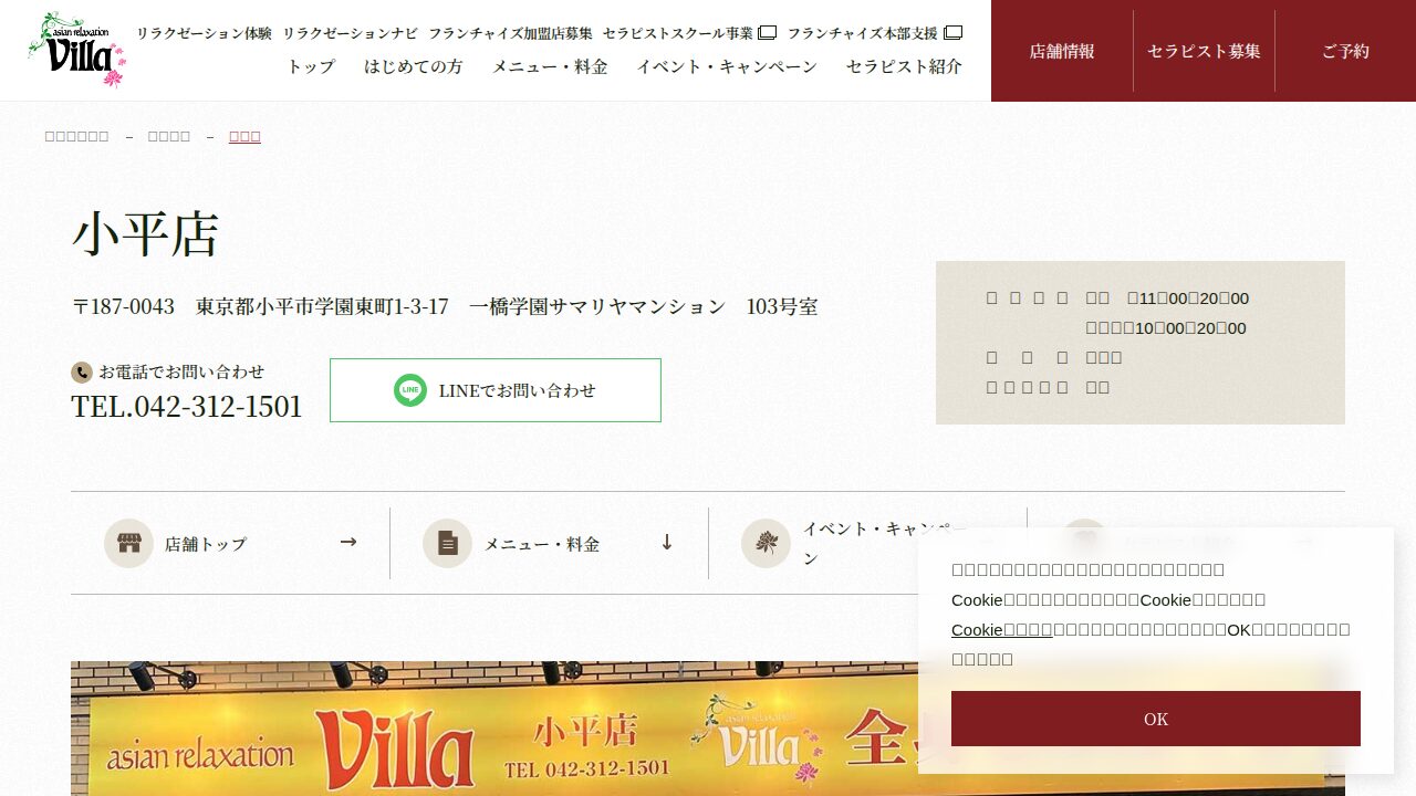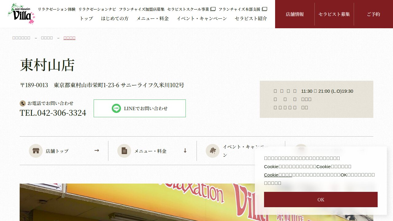 東村山市に店舗を構えるリラクゼーションサロン『ヴィラ東村山店』。落ち着いた空間で心身ともにリラックスできる時間を提供しています。 完全個室のプライベート空間 […]