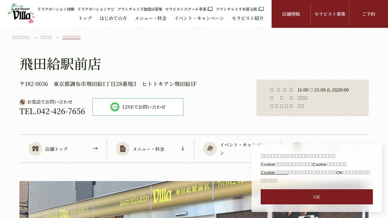 地元調布市で評判の『ヴィラ飛田給駅前店』は、やさしい照明と香りに包まれながら、疲れた身体をゆっくり癒せる環境が整っています。 完全個室のプライベート […]