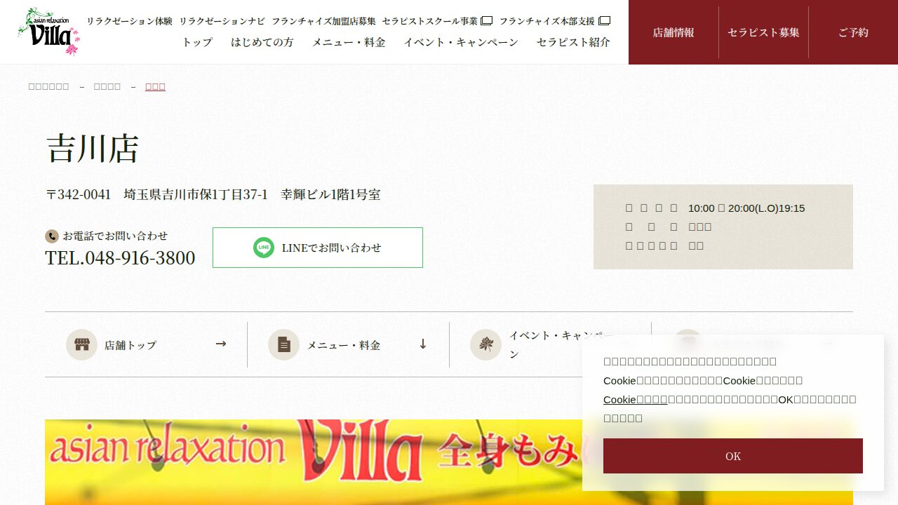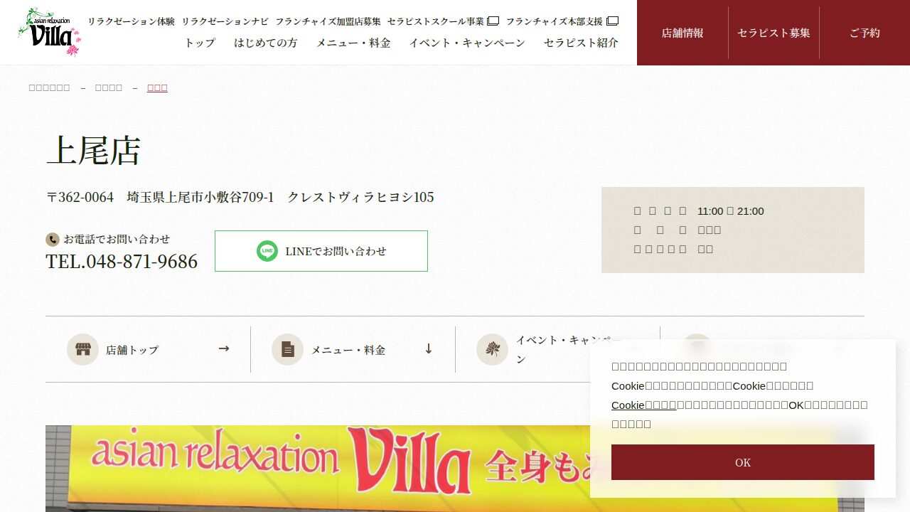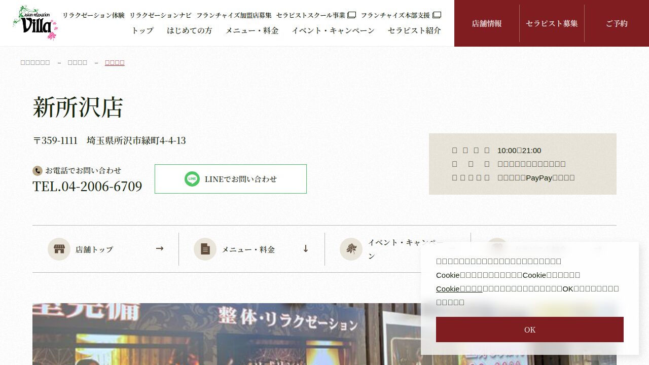 上尾市に店舗を構えるリラクゼーションサロン『ヴィラ上尾店』。落ち着いた空間で心身…