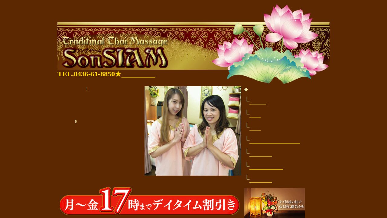 地元市原市で評判の『ソンサヤーム』は、やさしい照明と香りに包まれながら、疲れた身…