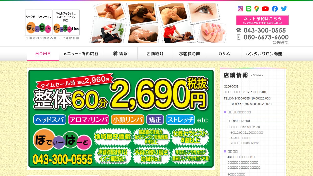 富里市にある本格サロン『ぽんぺん』は、落ち着いた空間で心身ともにリラックスできる…