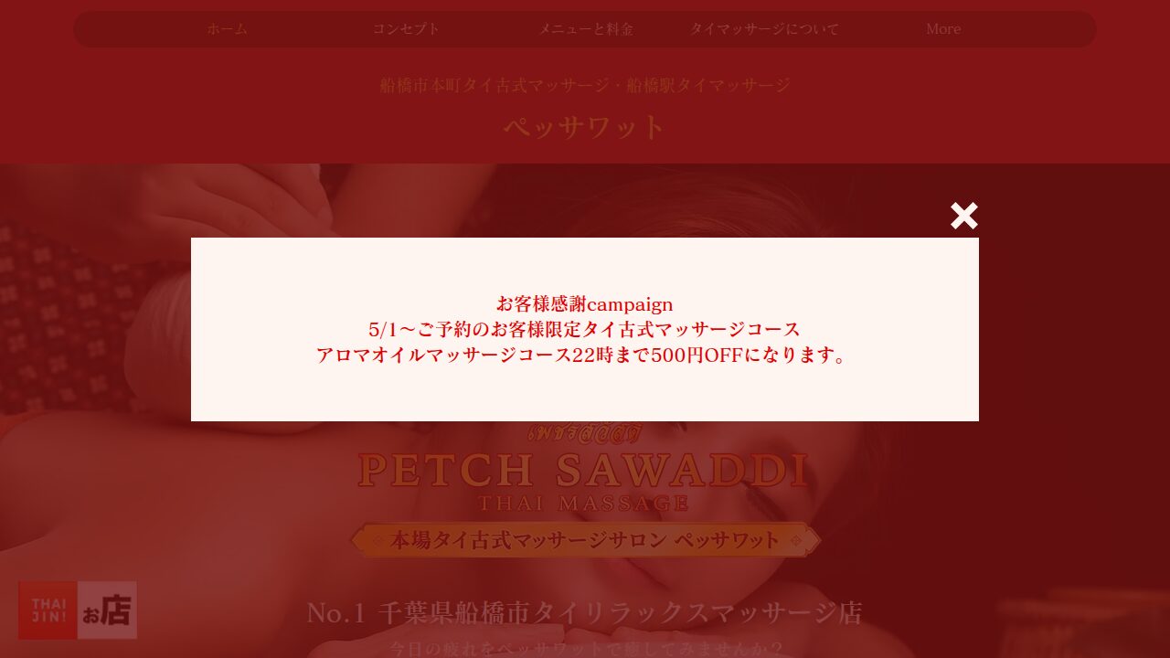 地元市原市で評判の『ソンサヤーム』は、やさしい照明と香りに包まれながら、疲れた身…