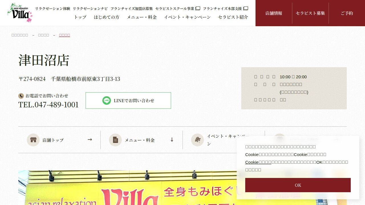 船橋市に店舗を構えるリラクゼーションサロン『ヴィラ津田沼店』。清潔感あふれる店内…