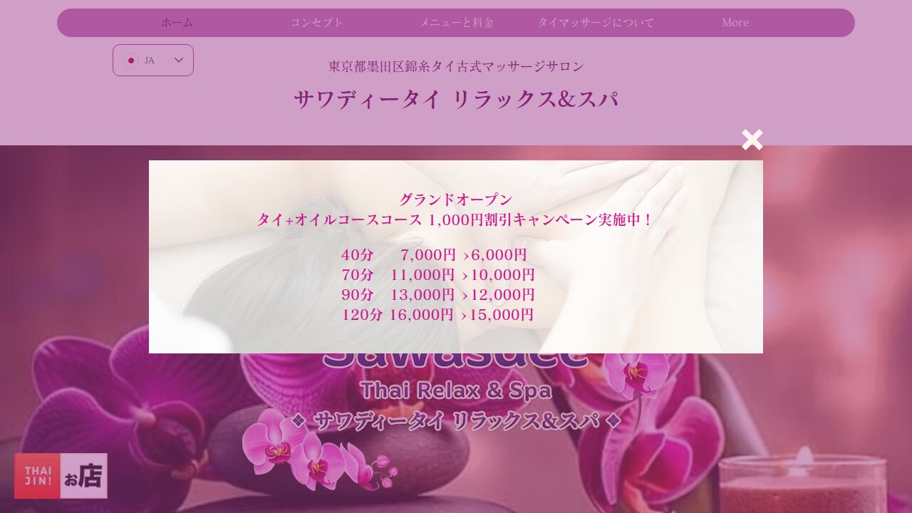 本格的な癒しを提供する『サワッディー』は、清潔感あふれる店内で、初めての方でも安…