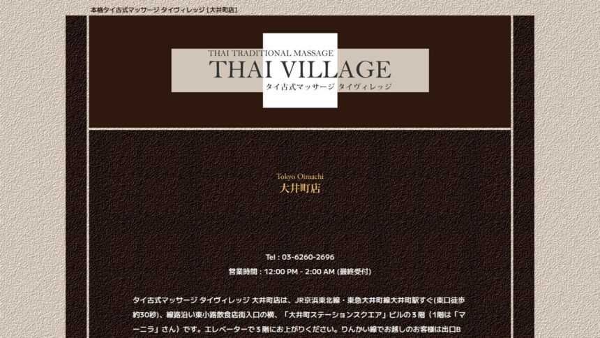 ※プランや詳細料金は タイヴィレッジ大井町店 の公式ページをご確認ください。
