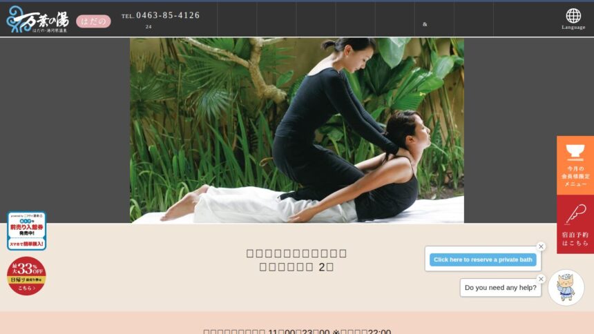 ※プランや詳細料金は 万葉の湯 はだの・湯河原温泉 の公式ページをご確認ください。