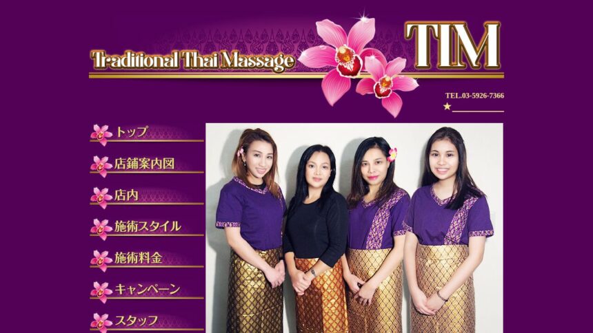 幅広い年代に支持されている『TIM(ティム)』は、静かでリラックスできる雰囲気が魅力で、忙しい日々のリフレッシュに最適です。 施術後に利用できるシャワー設備も整っています、タイ人セラピストによる本場の技術を味わえます。丁寧で心地よい施術が魅力で、施術後は身体が軽くなると評判です。 営業時間は13:00-翌1:30(日曜24:00まで)。 年中無休で営業しています。 心身ともにリラックスしたい方にぜひ訪れてほしいお店です。