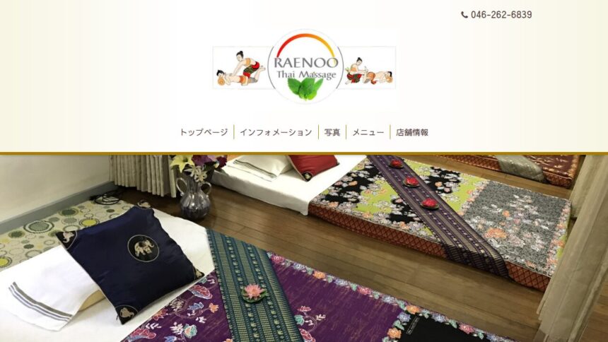 地元大和市で評判の『RAENOO(レノウ)』は、静かでリラックスできる雰囲気が魅力で、忙しい日々のリフレッシュに最適です。 施術後に利用できるシャワー設備も整っています、タイ人セラピストによる本場の技術を味わえます。適度な力加減で身体のコリをしっかりほぐしてくれます。 営業時間は12:00-24:00。 年中無休で営業しています。 ご予約やお問い合わせはお電話(046-262-6839)にて受け付けています。 日々の疲れを癒したい方にぴったりのお店です。