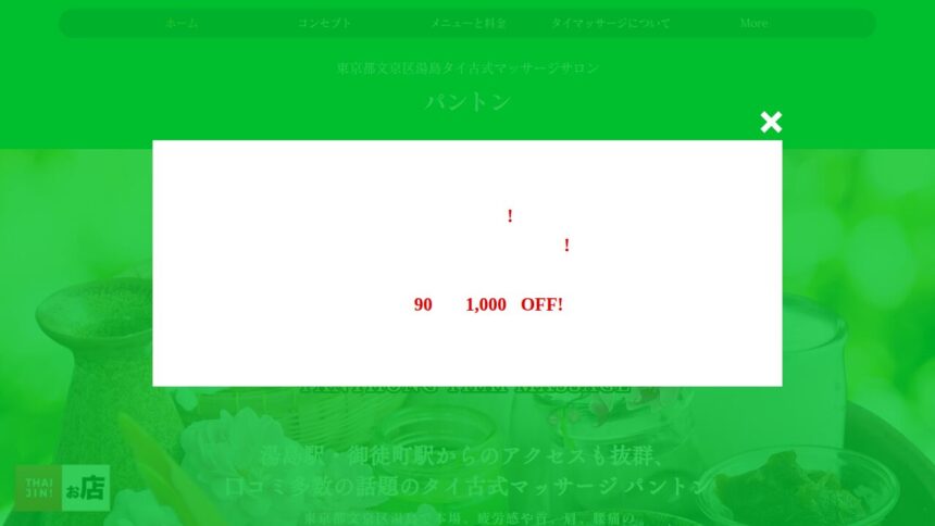 初めての方でも利用しやすい『パントン』は、やさしい照明と香りに包まれながら、疲れた身体をゆっくり癒せる環境が整っています。 施術後に利用できるシャワー設備も整っています、タイ人セラピストによる本場の技術を味わえます。丁寧で心地よい施術が魅力で、施術後は身体が軽くなると評判です。 営業時間は9:00-翌3:00。 年中無休で営業しています。 予約に関する問い合わせは(03-5818-5340)までお気軽にどうぞ。 日々の疲れを癒したい方にぴったりのお店です。