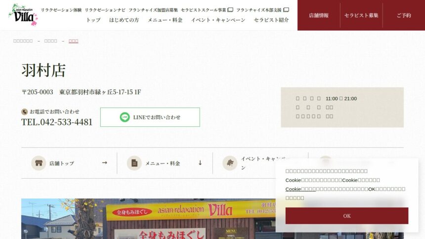 | 店舗URL | https://www.asian-relaxation-villa.com/salon/hamura.html |