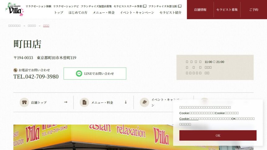 | 店舗URL | https://www.asian-relaxation-villa.com/salon/machida.html |
