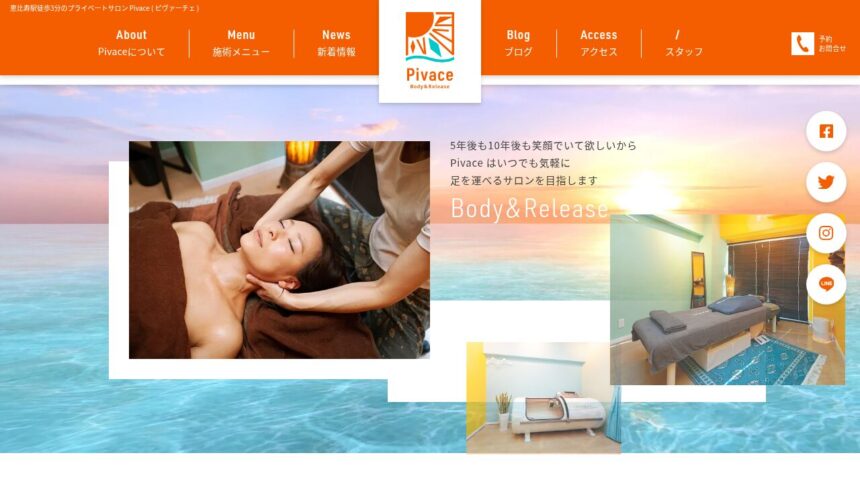 初めての方でも利用しやすい『Pivace(ピヴァーチェ)』は、清潔感あふれる店内で、初めての方でも安心して施術を受けられます。 完全個室のプライベート空間で周りを気にせず過ごせます、日本人スタッフによる丁寧な対応も好評です、キャッシュレス決済に対応しているため会計もスムーズです。経験豊富なスタッフが一人ひとりに合わせた施術を行ってくれます。 営業時間は12:00-22:00(日曜20:00まで)。 定休日はのお知らせです。 予約に関する問い合わせは(03-6456-4559)までお気軽にどうぞ。 日々の疲れを癒したい方にぴったりのお店です。