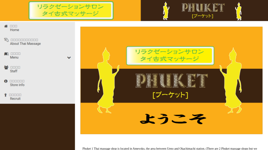 落ち着いた雰囲気が魅力の『PHUKET(プーケット)』は、清潔感あふれる店内で、初めての方でも安心して施術を受けられます。 完全個室のプライベート空間で周りを気にせず過ごせます、施術後に利用できるシャワー設備も整っています、タイ人セラピストによる本場の技術を味わえます。タイ古式特有のゆったりと流れるリズムで心身ともに癒されます。 営業時間は12:00-24:00。 定休日は12月31日〜1月1です。 日々の疲れを癒したい方にぴったりのお店です。