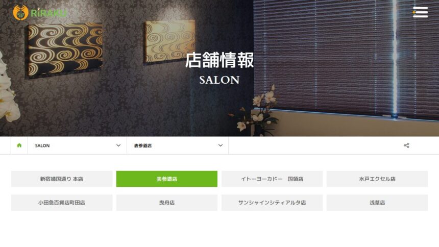 | 店舗URL | https://hogushiyahonpo-riraku.jp/salon-omotesandoten |