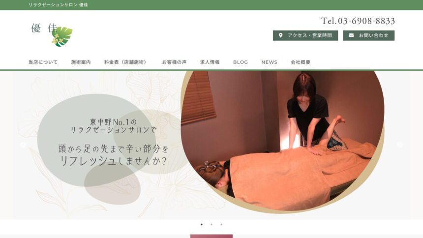 幅広い年代に支持されている『優佳(ユウカ)』は、やさしい照明と香りに包まれながら、疲れた身体をゆっくり癒せる環境が整っています。 完全個室のプライベート空間で周りを気にせず過ごせます、日本人スタッフによる丁寧な対応も好評です、キャッシュレス決済に対応しているため会計もスムーズです。丁寧で心地よい施術が魅力で、施術後は身体が軽くなると評判です。 営業時間は11:00-22:00。 定休日は不定休です。 日々の疲れを癒したい方にぴったりのお店です。