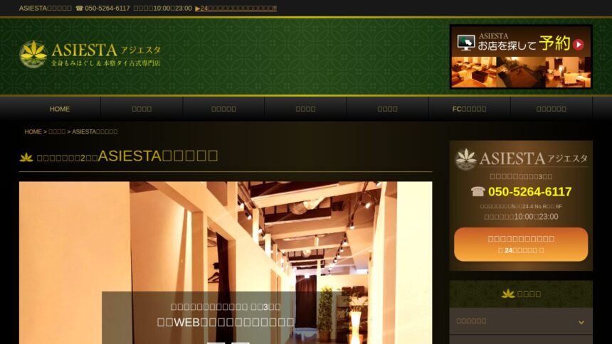 ゆったり癒される空間の『アジエスタ蒲田東口店』は、静かでリラックスできる雰囲気が魅力で、忙しい日々のリフレッシュに最適です。 完全個室のプライベート空間で周りを気にせず過ごせます、日本人スタッフによる丁寧な対応も好評です、キャッシュレス決済に対応しているため会計もスムーズです。経験豊富なスタッフが一人ひとりに合わせた施術を行ってくれます。 営業時間は10:00-23:00。 年中無休で営業しています。 ご予約やお問い合わせはお電話(050-5264-6117)にて受け付けています。 癒しを求める多くの方におすすめのサロンです。