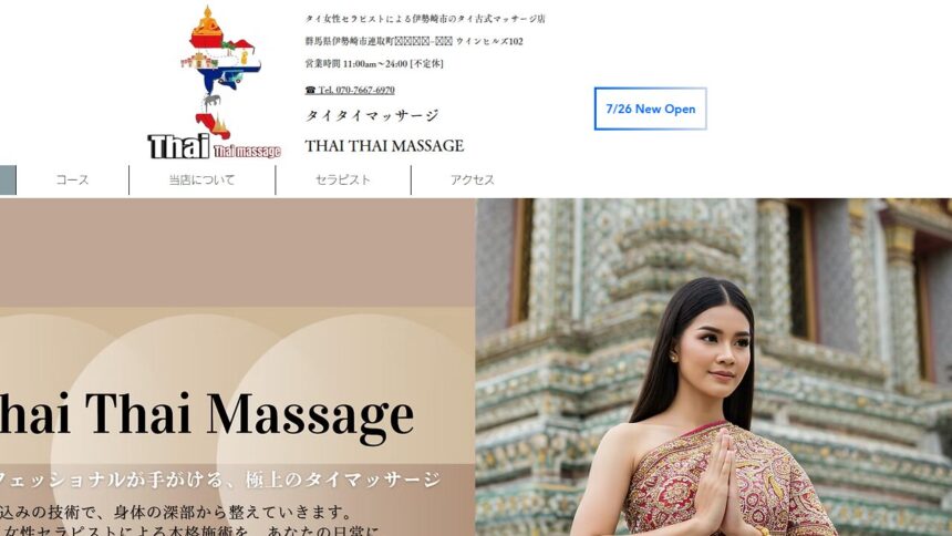 伊勢崎市で多くのリピーターを持つ『タイタイマッサージ』は、落ち着いた空間で心身ともにリラックスできる時間を提供しています。 完全個室のプライベート空間で周りを気にせず過ごせます、タイ人セラピストによる本場の技術を味わえます、駐車場完備で車での来店もしやすい点も魅力です。丁寧で心地よい施術が魅力で、施術後は身体が軽くなると評判です。 営業時間は11:00-24:00。 年中無休で営業しています。 日々の疲れを癒したい方にぴったりのお店です。