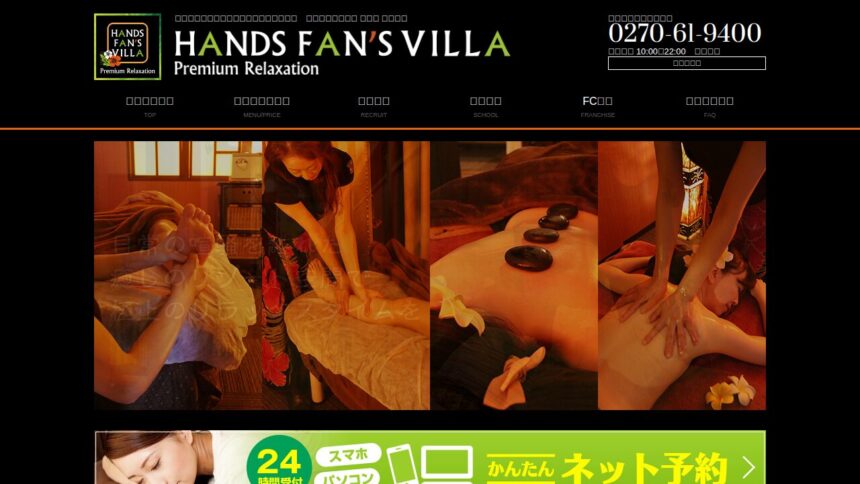 伊勢崎市エリアで人気の『ハンズファンズヴィラ伊勢崎店』は、清潔感あふれる店内で、初めての方でも安心して施術を受けられます。 完全個室のプライベート空間で周りを気にせず過ごせます、日本人スタッフによる丁寧な対応も好評です、駐車場完備で車での来店もしやすい点も魅力です、キャッシュレス決済に対応しているため会計もスムーズです。タイ古式特有のゆったりと流れるリズムで心身ともに癒されます。 営業時間は10:00-22:00。 定休日は土曜です。 予約に関する問い合わせは(0270-61-9400)までお気軽にどうぞ。 心身ともにリラックスしたい方にぜひ訪れてほしいお店です。