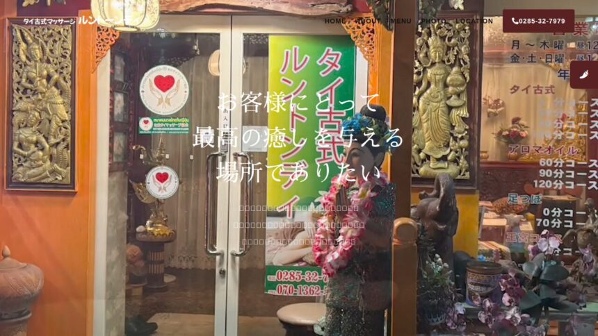 地元小山市で評判の『ルントーンディ』は、アジアンテイストの空間が広がり、まるで旅行に来たようなリラックス感が味わえます。 施術後に利用できるシャワー設備も整っています、タイ人セラピストによる本場の技術を味わえます、駐車場完備で車での来店もしやすい点も魅力です、キャッシュレス決済に対応しているため会計もスムーズです。丁寧で心地よい施術が魅力で、施術後は身体が軽くなると評判です。 営業時間は12:00-24:00。 年中無休で営業しています。 ご予約やお問い合わせはお電話(0285-32-7979)にて受け付けています。 心身ともにリラックスしたい方にぜひ訪れてほしいお店です。