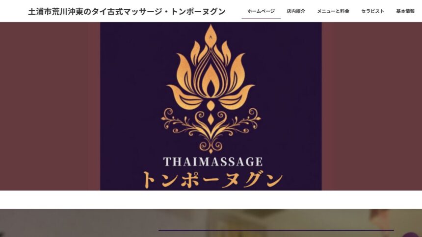 地元土浦市で評判の『トンポーヌグン』は、落ち着いた空間で心身ともにリラックスできる時間を提供しています。 施術後に利用できるシャワー設備も整っています、タイ人セラピストによる本場の技術を味わえます、駐車場完備で車での来店もしやすい点も魅力です。丁寧で心地よい施術が魅力で、施術後は身体が軽くなると評判です。 営業時間は12:00-24:00。 定休日は不定休です。 お電話(029-841-3670)からも予約が可能です。 忙しい毎日のリフレッシュに最適なサロンです。