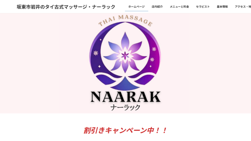 坂東市にある本格サロン『Naarak(ナーラック)』は、清潔感あふれる店内で、初めての方でも安心して施術を受けられます。 完全個室のプライベート空間で周りを気にせず過ごせます、施術後に利用できるシャワー設備も整っています、タイ人セラピストによる本場の技術を味わえます、駐車場完備で車での来店もしやすい点も魅力です。丁寧で心地よい施術が魅力で、施術後は身体が軽くなると評判です。 営業時間は11:00-翌1:00。 定休日は不定休です。 ご予約やお問い合わせはお電話(090-5678-2528)にて受け付けています。 忙しい毎日のリフレッシュに最適なサロンです。