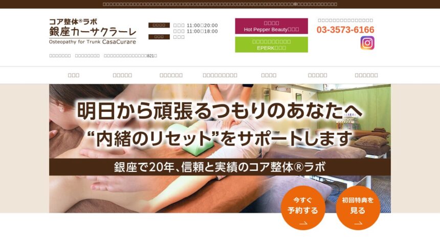 初めての方でも利用しやすい『銀座カーサクラーレ』は、落ち着いた空間で心身ともにリラックスできる時間を提供しています。 日本人スタッフによる丁寧な対応も好評です、キャッシュレス決済に対応しているため会計もスムーズです。適度な力加減で身体のコリをしっかりほぐしてくれます。 営業時間は11:00-20:00(土日祝18:00まで)。 定休日は不定休です。 お電話(03-3573-6166)からも予約が可能です。 癒しを求める多くの方におすすめのサロンです。