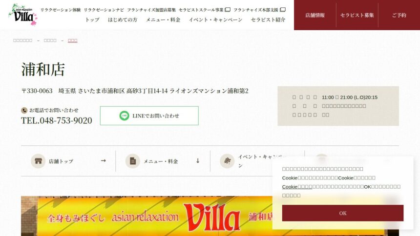 店舗URLhttps://www.asian-relaxation-villa.com/salon/urawa.html