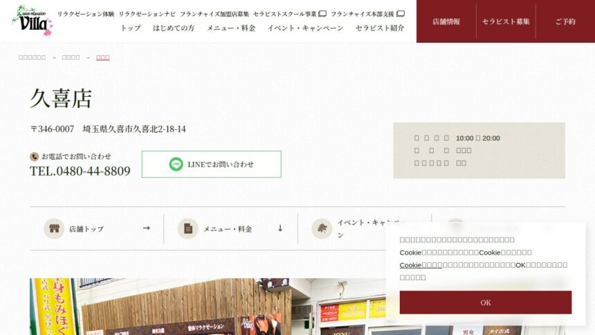 ※プランや詳細料金は ヴィラ久喜店 の公式ページをご確認ください。