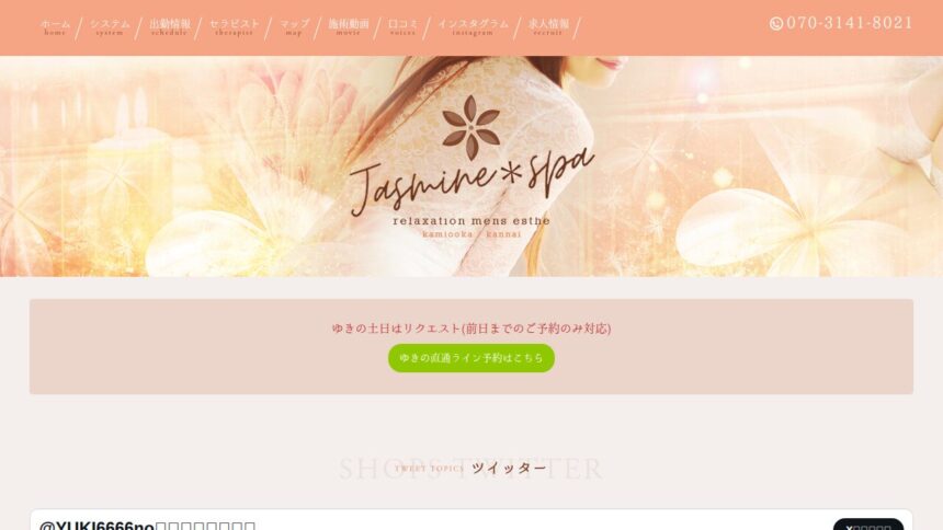 ※プランや詳細料金は JASMINE SPA 上大岡店 の公式ページをご確認ください。