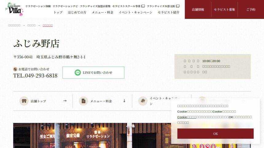 | 店舗URL | https://www.asian-relaxation-villa.com/salon/fujimino.html |