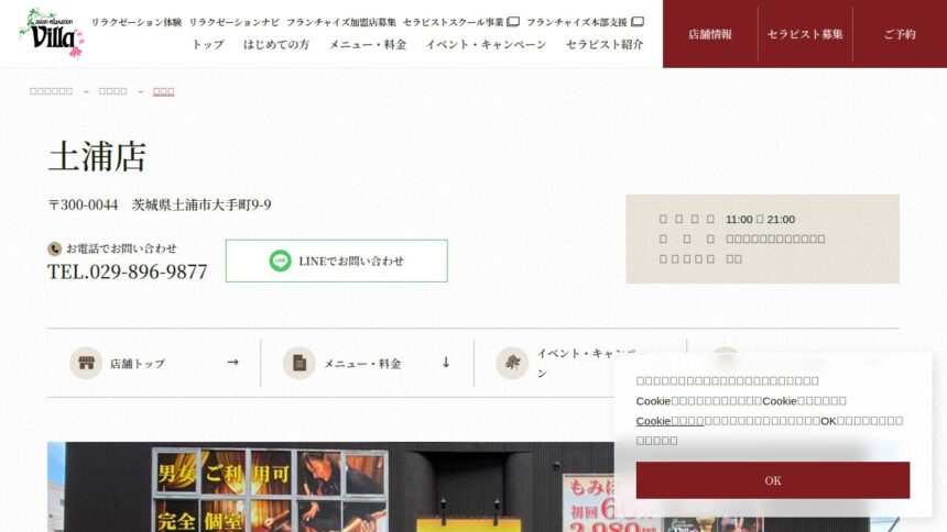 | 店舗URL | https://www.asian-relaxation-villa.com/salon/tsuchiura.html |