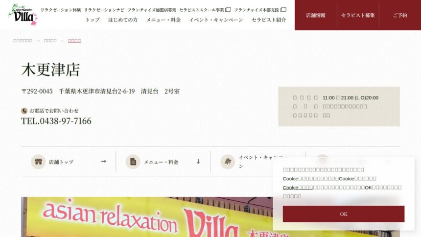 | 店舗URL | https://www.asian-relaxation-villa.com/salon/kisarazu.html |