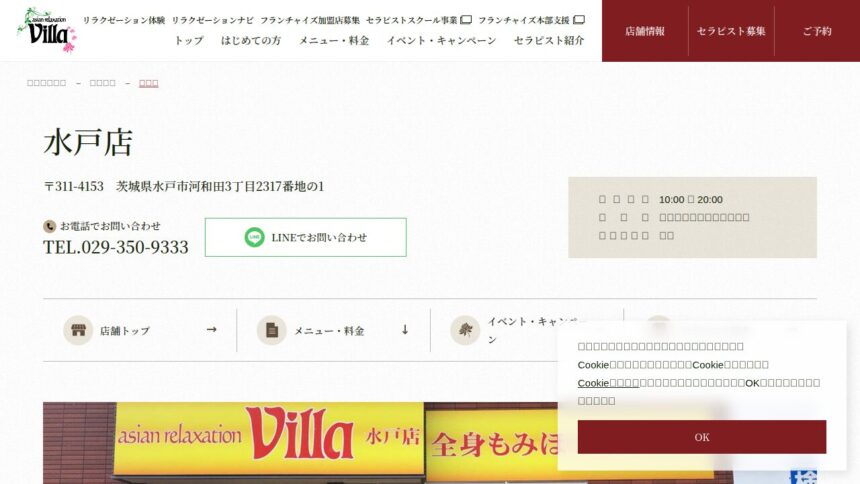 | 店舗URL | https://www.asian-relaxation-villa.com/salon/mito.html |
