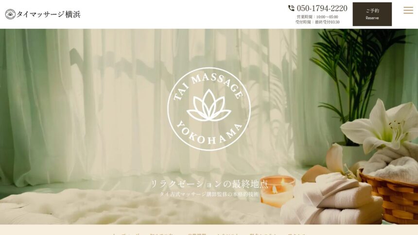 横浜市エリアで人気の『タイマッサージ横浜』は、やさしい照明と香りに包まれながら、疲れた身体をゆっくり癒せる環境が整っています。 完全個室のプライベート空間で周りを気にせず過ごせます、日本人スタッフによる丁寧な対応も好評です、キャッシュレス決済に対応しているため会計もスムーズです、出張マッサージにも対応しており、自宅でも施術が受けられます。丁寧で心地よい施術が魅力で、施術後は身体が軽くなると評判です。 営業時間は10:00-翌5:00。 年中無休で営業しています。 ご予約やお問い合わせはお電話(050-1794-2220)にて受け付けています。 忙しい毎日のリフレッシュに最適なサロンです。