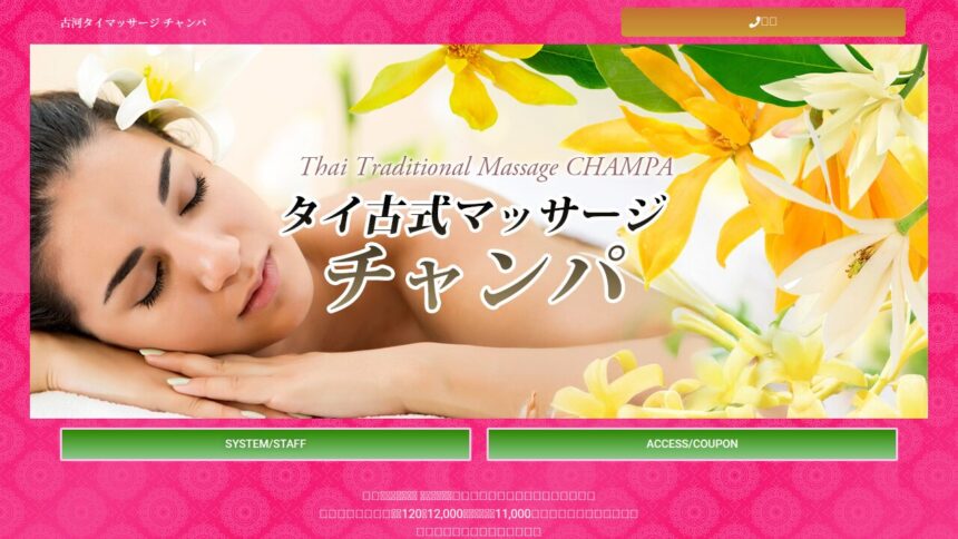 古河市に店舗を構えるリラクゼーションサロン『チャンパ』。落ち着いた空間で心身ともにリラックスできる時間を提供しています。 タイ人セラピストによる本場の技術を味わえます、駐車場完備で車での来店もしやすい点も魅力です。丁寧で心地よい施術が魅力で、施術後は身体が軽くなると評判です。 営業時間は10:00-24:00。 年中無休で営業しています。 ご予約やお問い合わせはお電話(070-8481-0549)にて受け付けています。 心身ともにリラックスしたい方にぜひ訪れてほしいお店です。