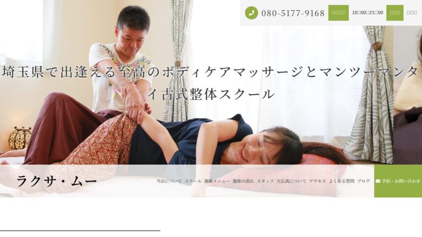 北本市にある本格サロン『ラクサ・ムー』は、アジアンテイストの空間が広がり、まるで旅行に来たようなリラックス感が味わえます。 完全個室のプライベート空間で周りを気にせず過ごせます、日本人スタッフによる丁寧な対応も好評です、駐車場完備で車での来店もしやすい点も魅力です、キャッシュレス決済に対応しているため会計もスムーズです、出張マッサージにも対応しており、自宅でも施術が受けられます。丁寧で心地よい施術が魅力で、施術後は身体が軽くなると評判です。 営業時間は10:00-21:00。 定休日は不定休です。 ご予約やお問い合わせはお電話(080-5177-9168)にて受け付けています。 心身ともにリラックスしたい方にぜひ訪れてほしいお店です。