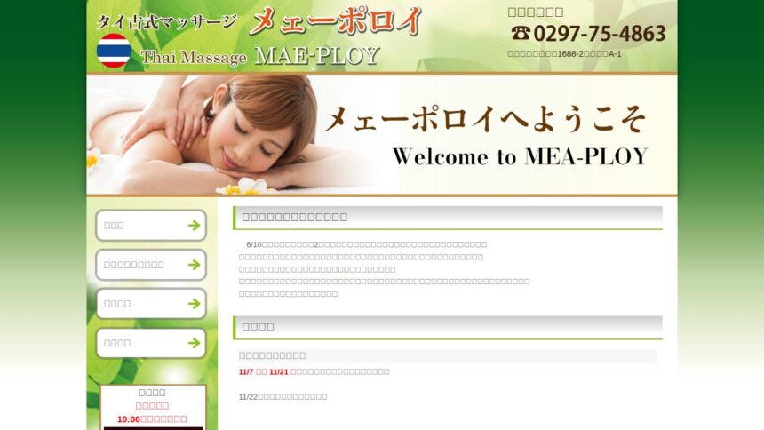 稲敷市で多くのリピーターを持つ『メェーポロイ』は、やさしい照明と香りに包まれながら、疲れた身体をゆっくり癒せる環境が整っています。 完全個室のプライベート空間で周りを気にせず過ごせます、タイ人セラピストによる本場の技術を味わえます、駐車場完備で車での来店もしやすい点も魅力です。タイ古式特有のゆったりと流れるリズムで心身ともに癒されます。 営業時間は16:00-22:00(土曜10:00から)。 定休日は火曜日です。 予約に関する問い合わせは(0297-75-4863)までお気軽にどうぞ。 心身ともにリラックスしたい方にぜひ訪れてほしいお店です。