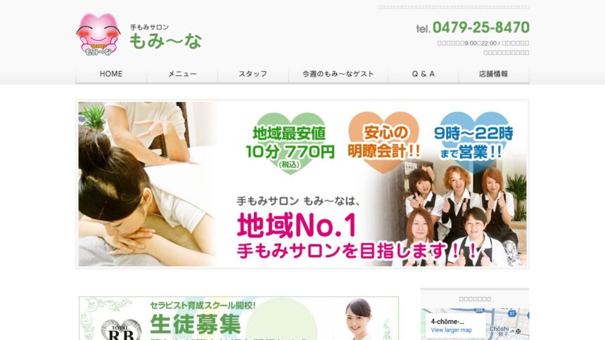 神栖市に店舗を構えるリラクゼーションサロン『もみ〜な 奥野谷店』。落ち着いた空間で心身ともにリラックスできる時間を提供しています。 日本人スタッフによる丁寧な対応も好評です、駐車場完備で車での来店もしやすい点も魅力です。経験豊富なスタッフが一人ひとりに合わせた施術を行ってくれます。 営業時間は9:00-22:00。 定休日は】です。 心身ともにリラックスしたい方にぜひ訪れてほしいお店です。