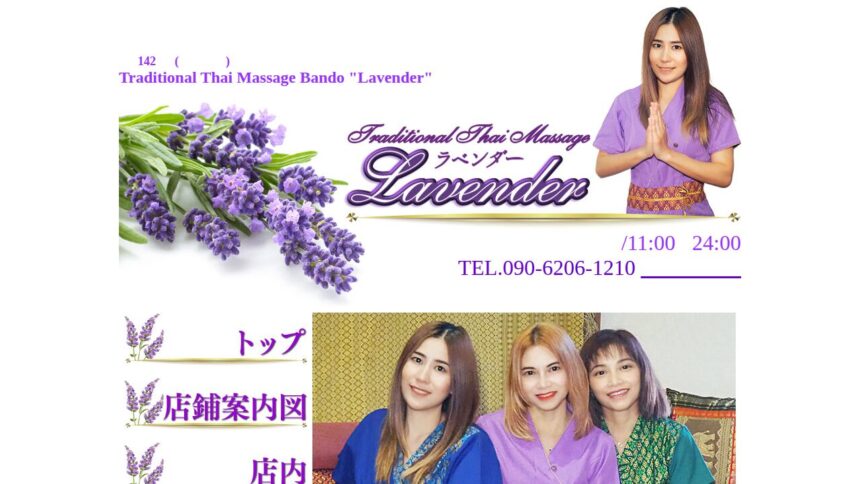 地元坂東市で評判の『Lavender(ラベンダー)』は、静かでリラックスできる雰囲気が魅力で、忙しい日々のリフレッシュに最適です。 完全個室のプライベート空間で周りを気にせず過ごせます、施術後に利用できるシャワー設備も整っています、タイ人セラピストによる本場の技術を味わえます、駐車場完備で車での来店もしやすい点も魅力です。経験豊富なスタッフが一人ひとりに合わせた施術を行ってくれます。 営業時間は11:00-24:00。 年中無休で営業しています。 日々の疲れを癒したい方にぴったりのお店です。