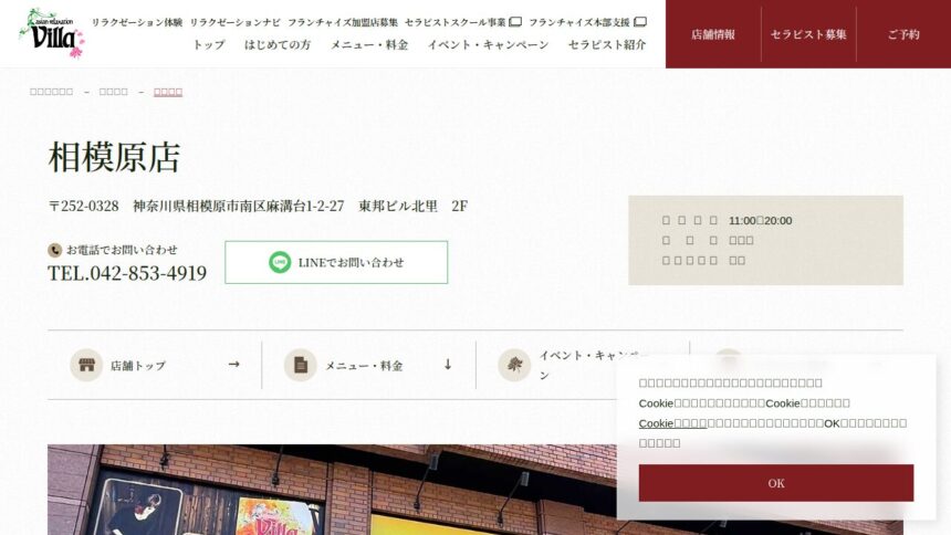 | 店舗URL | https://www.asian-relaxation-villa.com/salon/sagamihara.html |