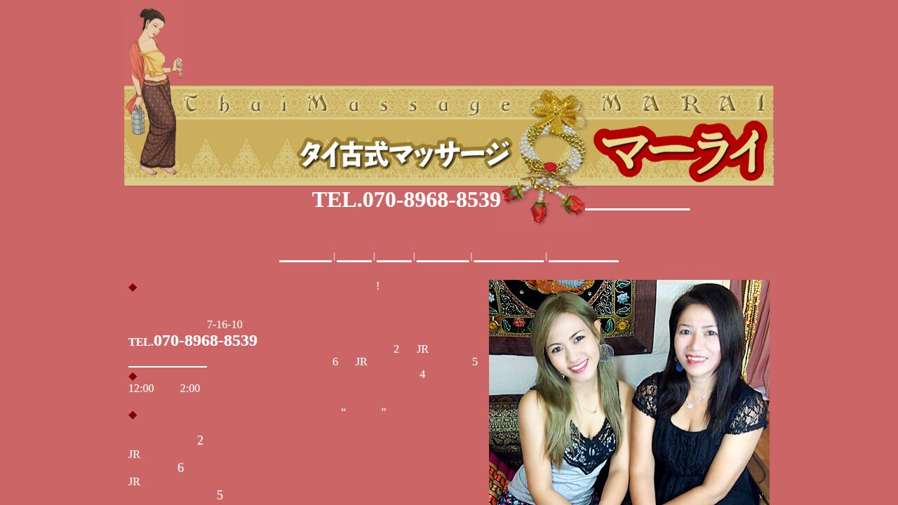 幅広い年代に支持されている『MARAI(マーライ)』は、やさしい照明と香りに包まれながら、疲れた身体をゆっくり癒せる環境が整っています。 完全個室のプライベート空 […]
