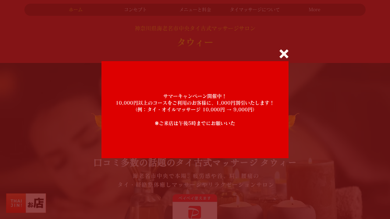 海老名市にある本格サロン『タウィー』は、清潔感あふれる店内で、初めての方でも安心して施術を受けられます。 完全個室のプライベート空間で周りを気にせ […]