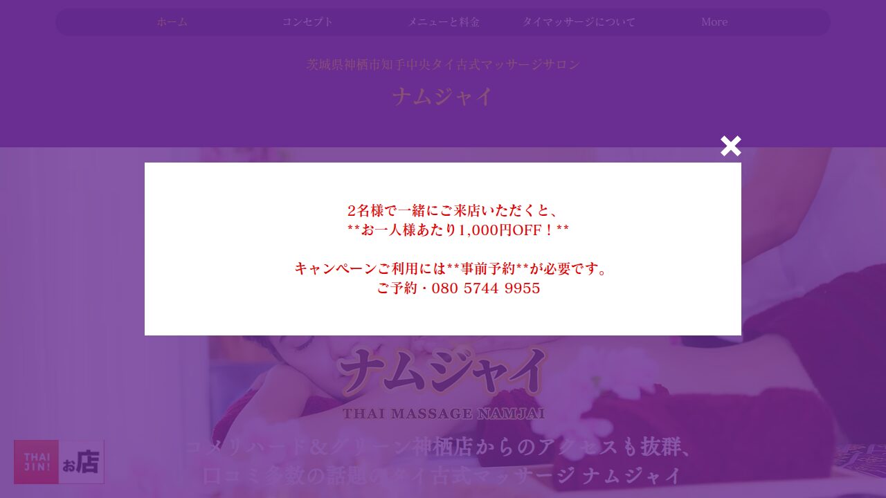 地元神栖市で評判の『ナムジャイ』は、清潔感あふれる店内で、初めての方でも安心して施術を受けられます。 タイ人セラピストによる本場の技術を味わえます、駐車場 […]