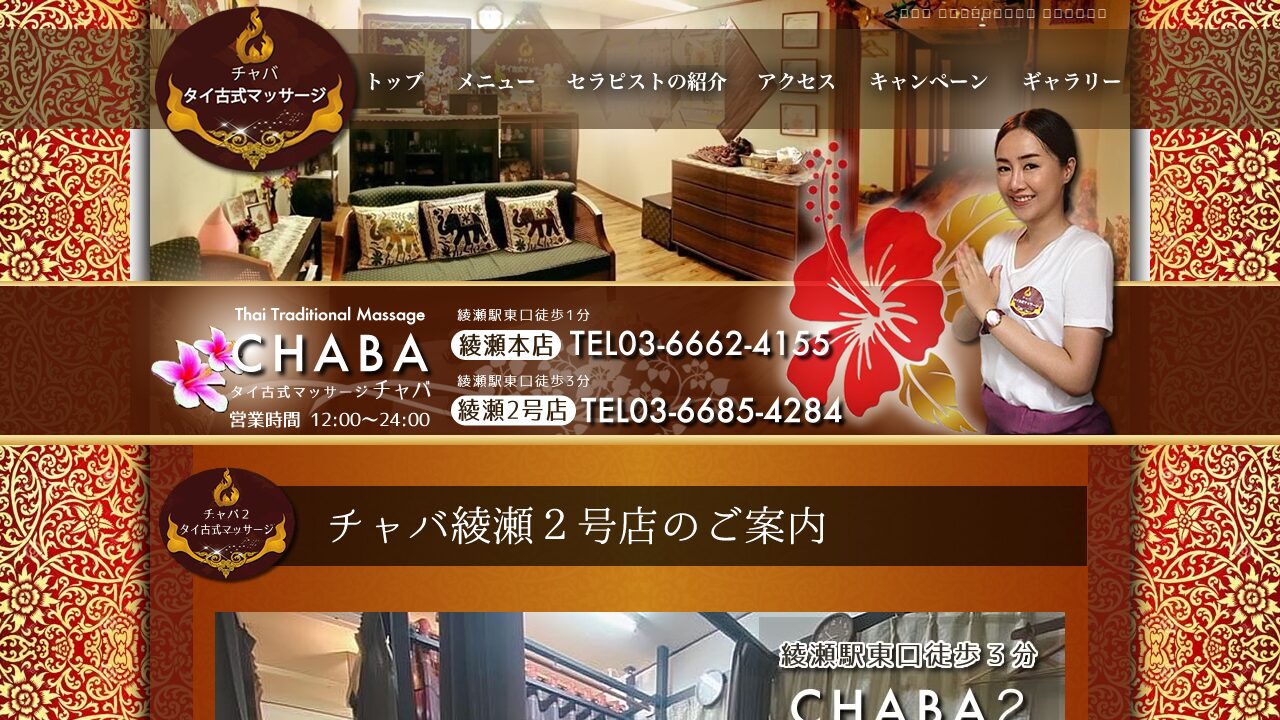 ゆったり癒される空間の『CHABA(チャバ)綾瀬2号店』は、落ち着いた空間で心身ともにリラックスできる時間を提供しています。 施術後に利用できるシャワー設備も整っていま […]