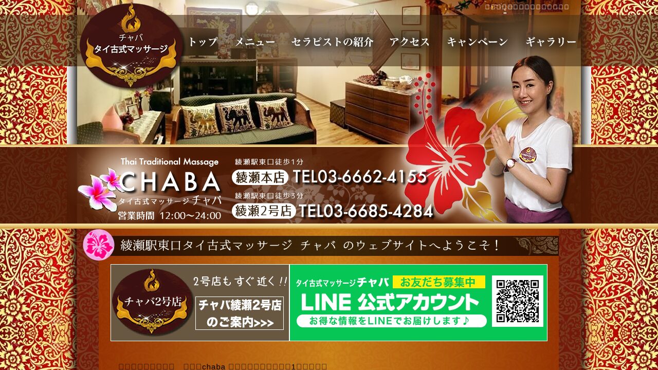 ゆったり癒される空間の『CHABA(チャバ)綾瀬本店』は、やさしい照明と香りに包まれながら、疲れた身体をゆっくり癒せる環境が整っています。 施術後に利用できるシャワー設 […]
